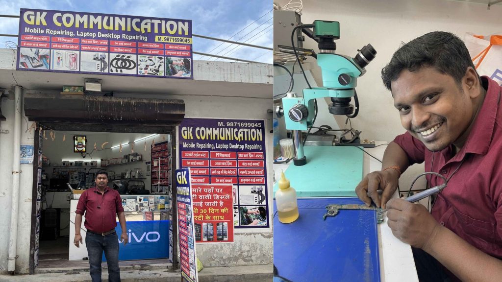 Balancing work (as a milk delivery person in the early mornings)and learning, Gautam attended classes daily after his morning shift with discipline and focus. He progressed from basic troubleshooting to fault diagnosis, component replacement, and even chip-level repair. Demonstrating initiative and creativity, he also designed a multi-pin charger capable of charging eight phones simultaneously.